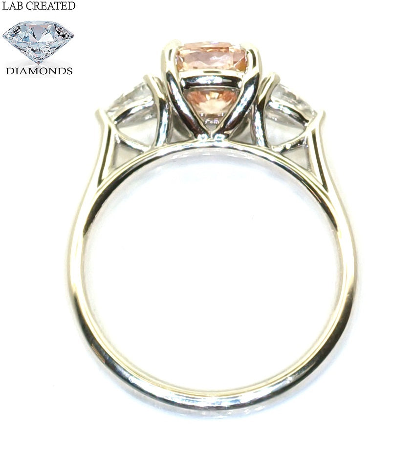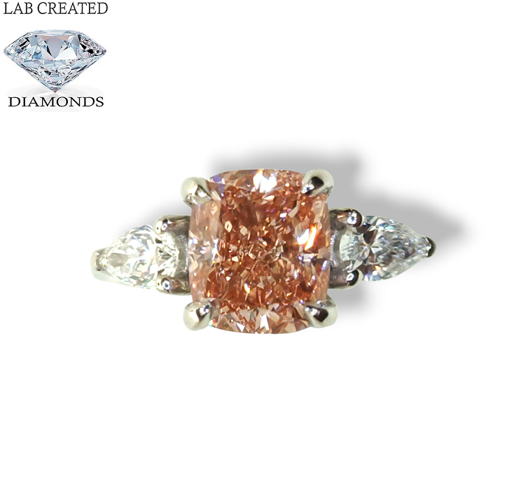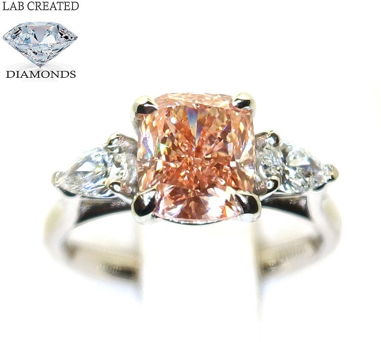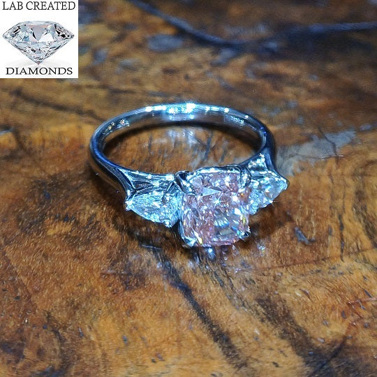 Platinum 2.38ct Lab Grown Pink Cushion Diamond 3 Stone Ring