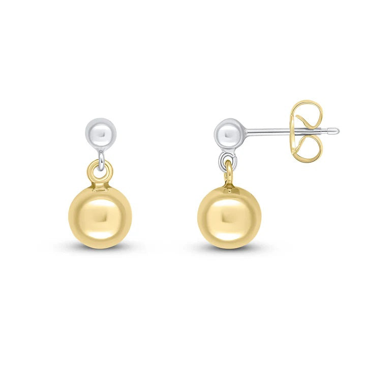9ct White Gold 3mm & Yellow Gold 6mm Polished Ball Drop Earrings
