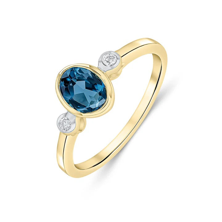 9ct Yellow Gold 3 Stone Topaz & Diamond Ring
