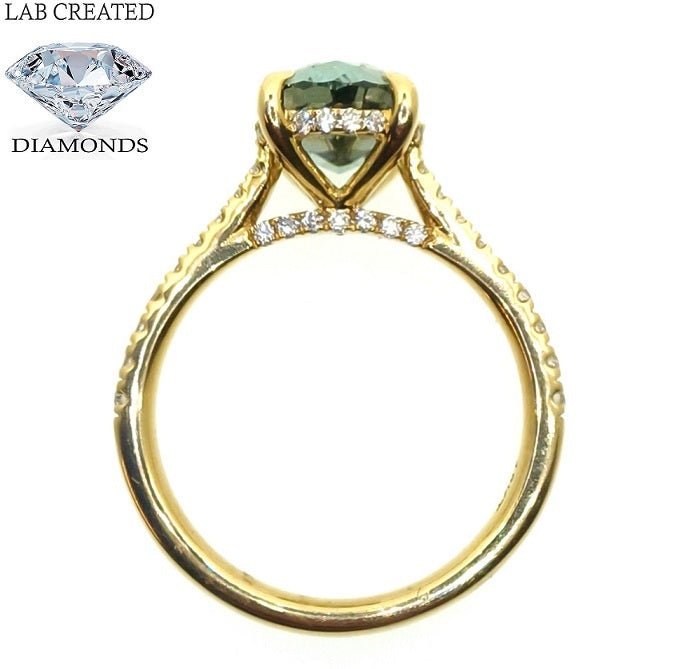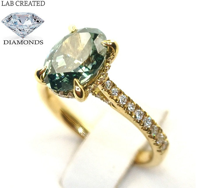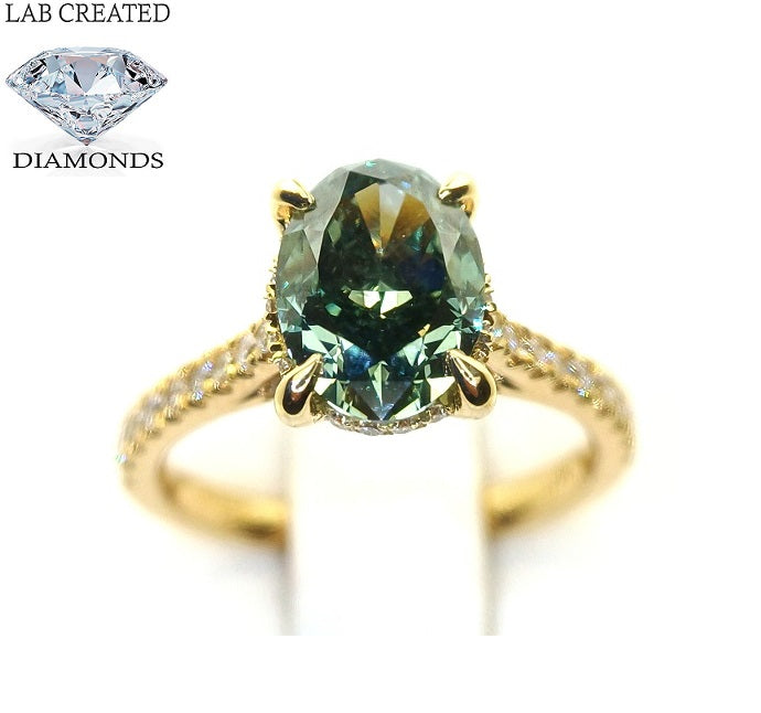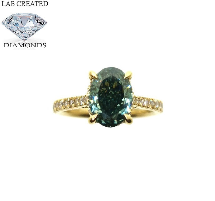 18ct Yellow Gold 2.92ct Lab Grown Intense Green Oval Cut Diamond Ring