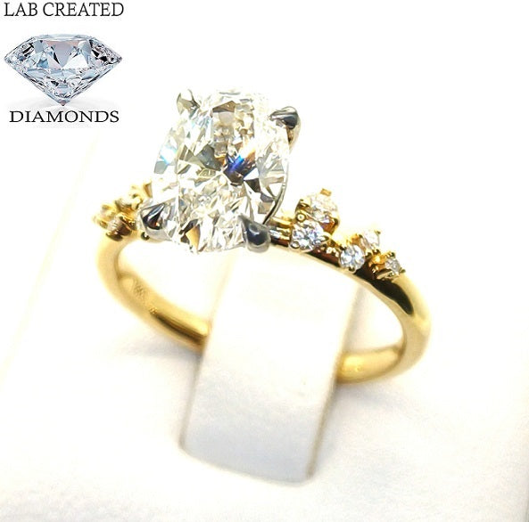 18ct Yellow Gold 2.01ct Lab Grown Oval Cut Solitaire Diamond Ring
