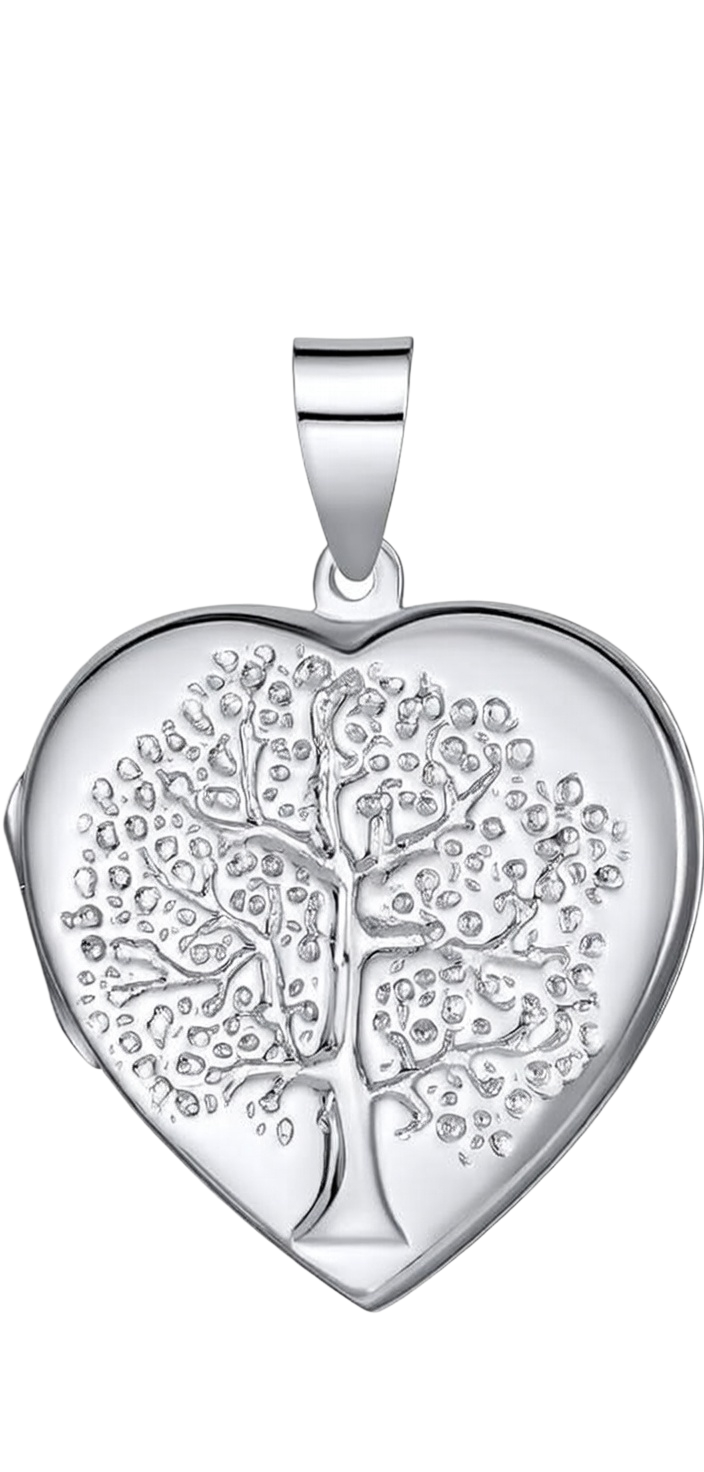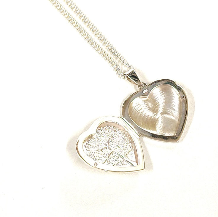 Sterling Silver Tree Of Life Heart Locket and Chain