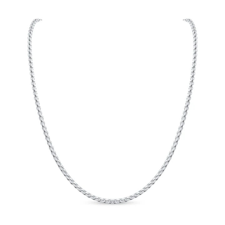 Sterling Silver 3mm Rounded Box Belcher Chain Necklace