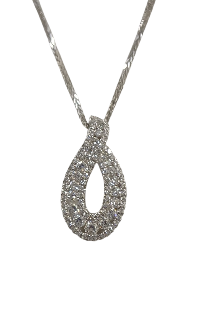 18ct White Gold 2.38ct Pear Shape Diamond Cluster Pendant Necklace