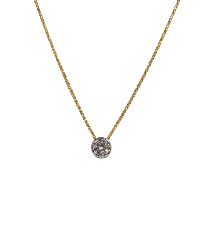 18ct Yellow Gold 0.50ct Rub Set Diamond Solitaire Necklace
