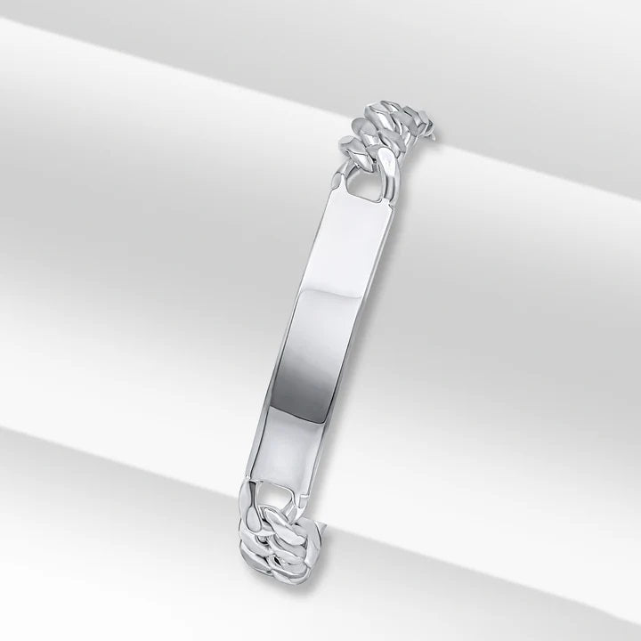 Sterling Silver 9mm Flat Curb ID Identification Bracelet