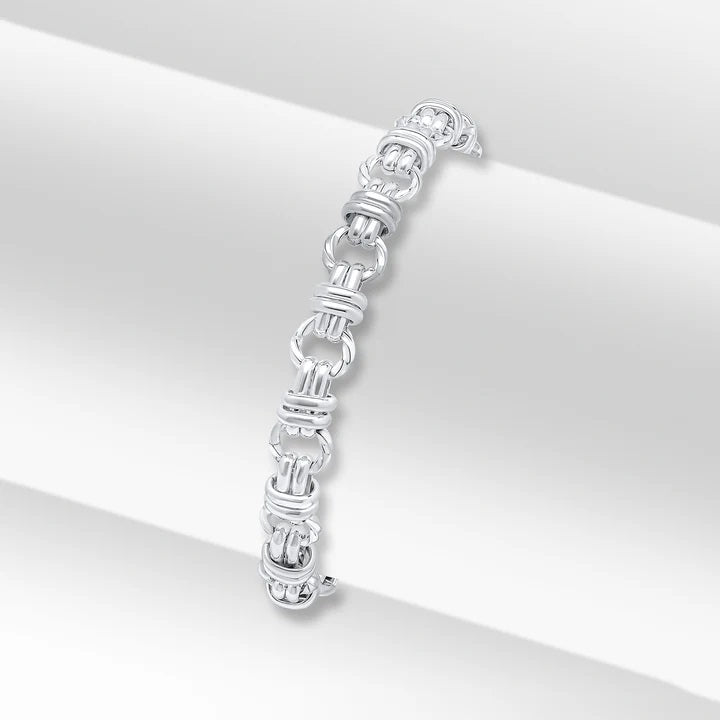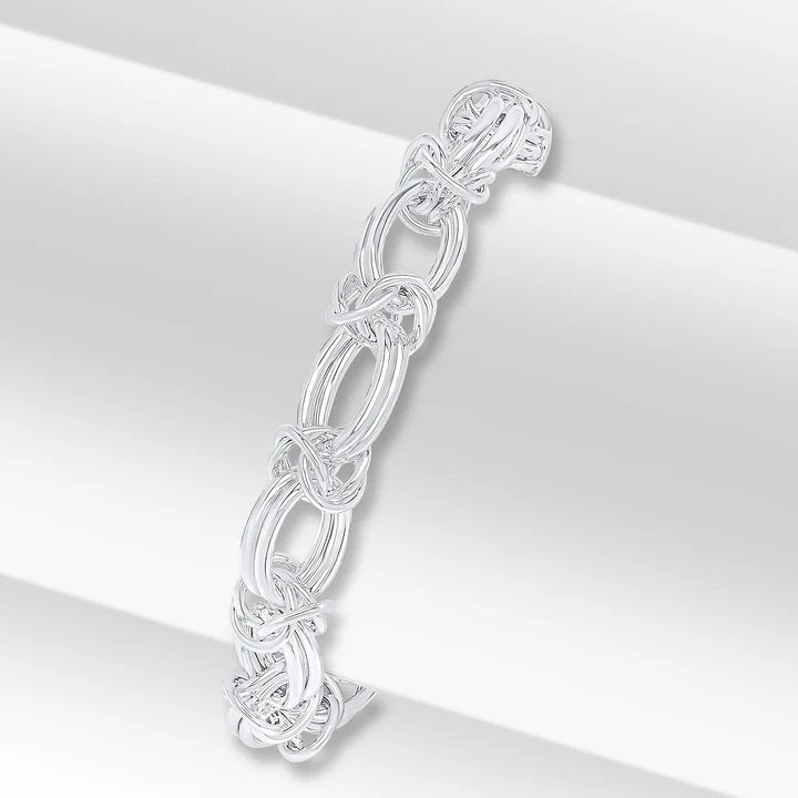 Sterling Silver 8.5mm Handmade Double Oval Byzantine Chain Bracelet