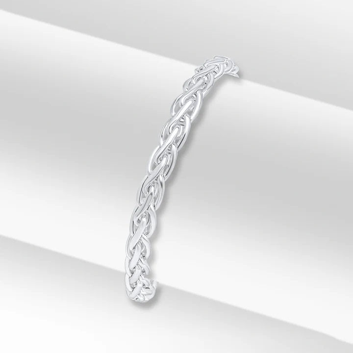 Sterling Silver 7mm Handmade Flat Spiga Chain Bracelet