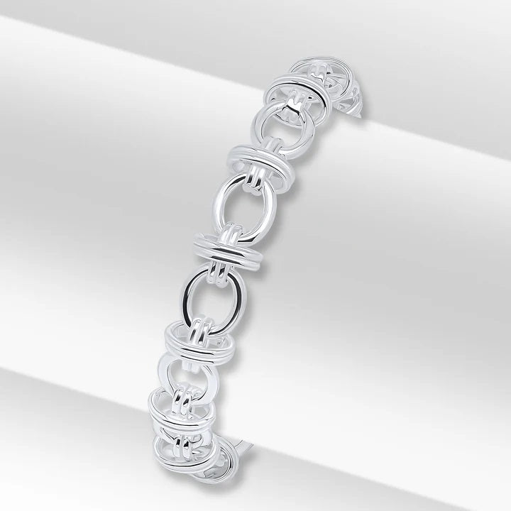 Sterling Silver 8mm Handmade Circle Belt Link Chain Bracelet