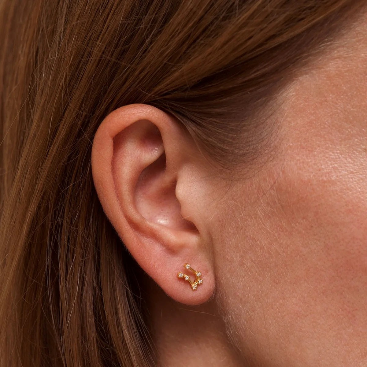 Yellow Gold On Silver Capricorn Zodiac Constellation Stud Earrings