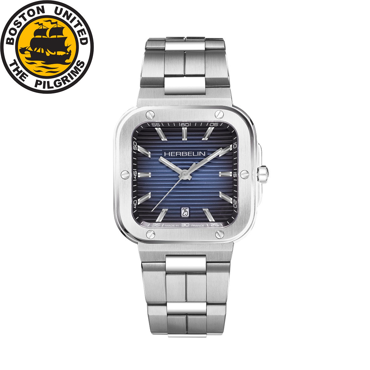 Mens Steel Herbelin Cap Camarat Square Quartz Watch on Bracelet
