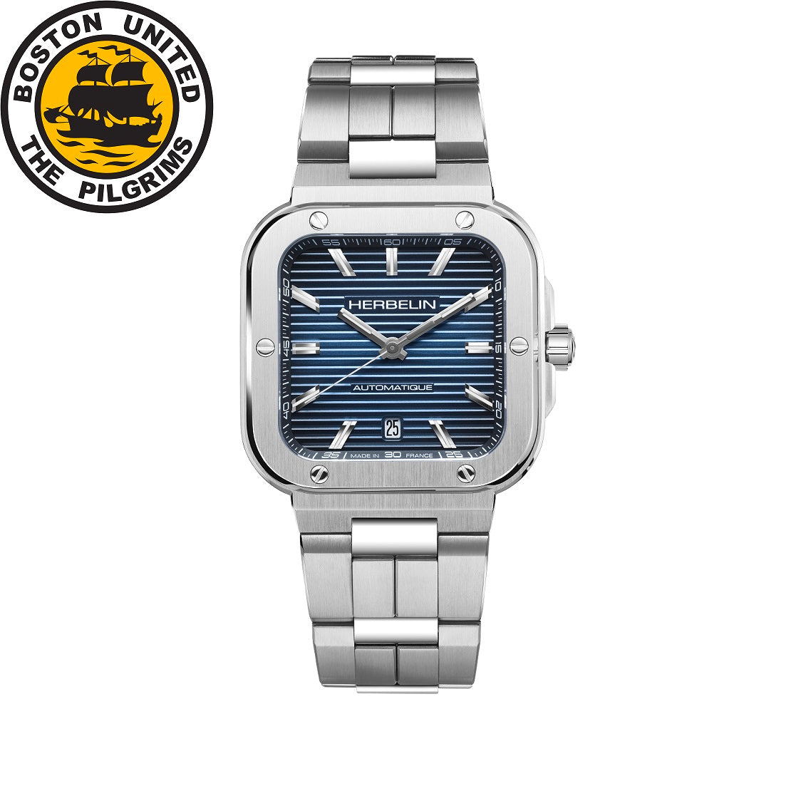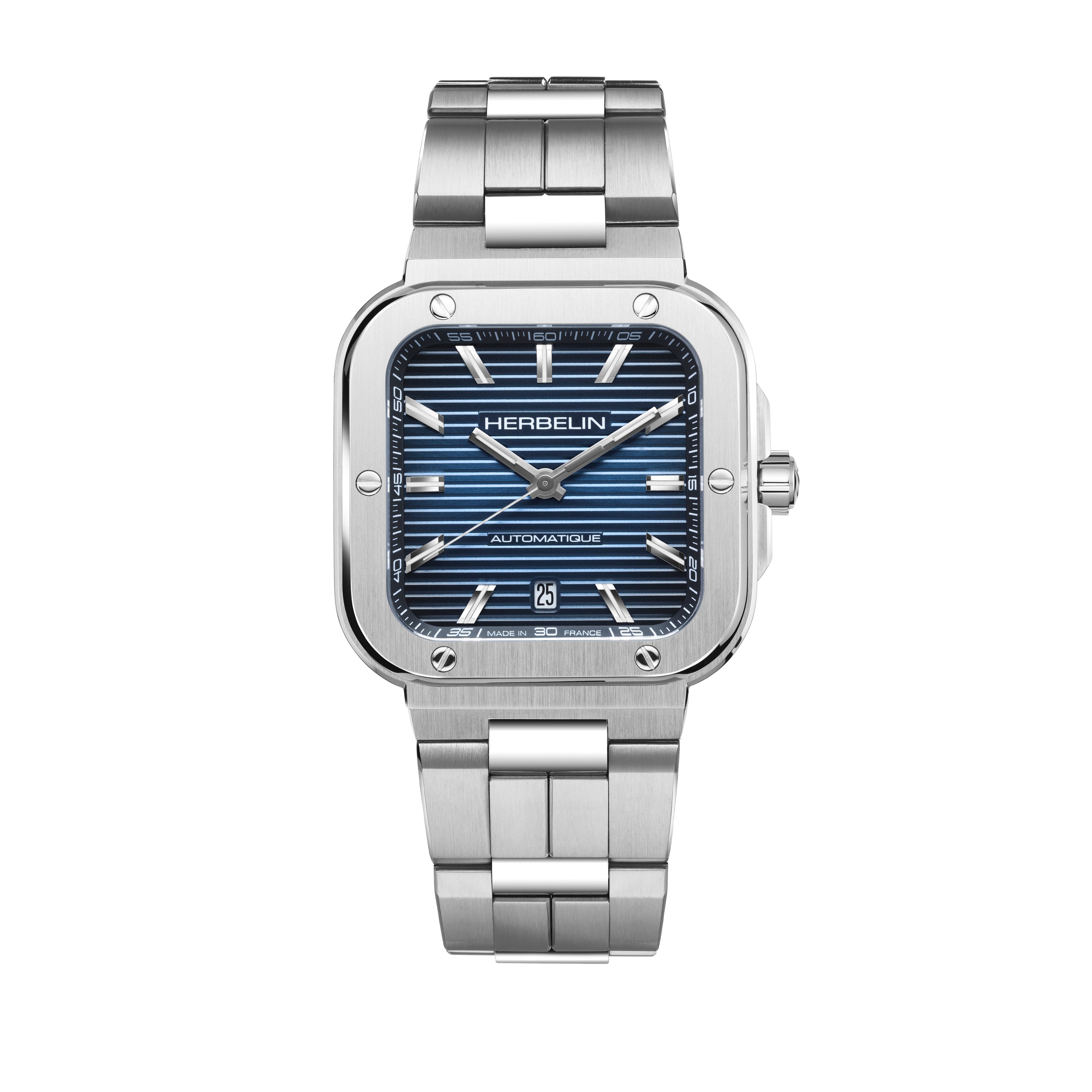 Mens Steel Herbelin Cap Camarat Square Automatic Watch on Bracelet